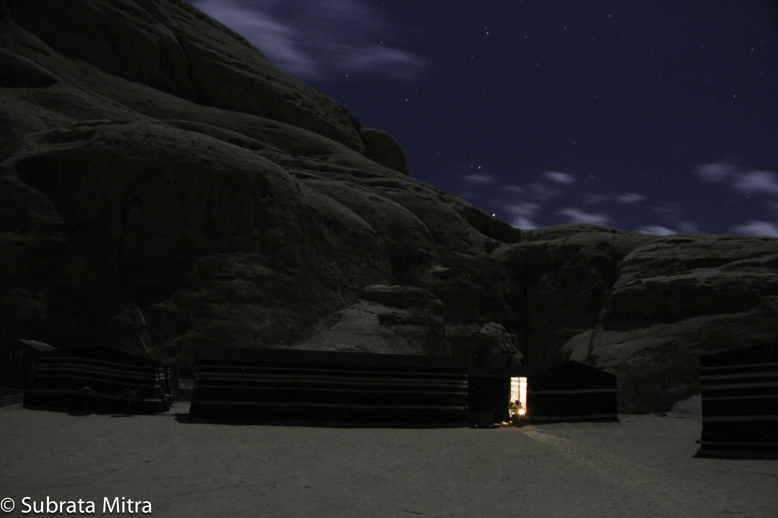 The desert by night is a magical intriguing landscape. At times when the moon is big and bright the desert is lit up in a silver light. When the moon is small the night sky stretches over your head with a billion stars sparkling. Shooting stars are frequently seen.